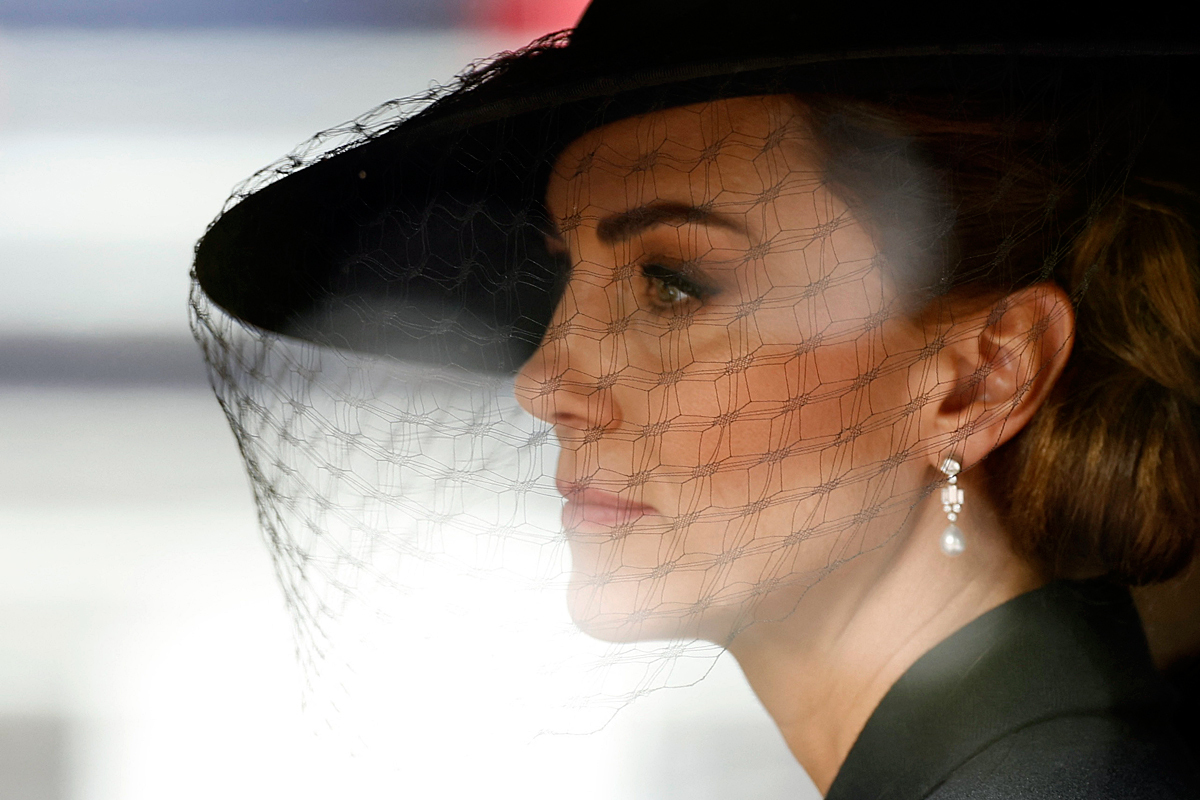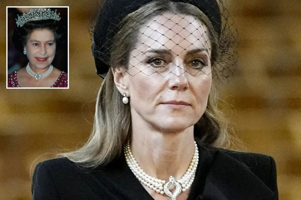 W tym uroczystym dniu Kate Middleton udała się na pogrzeb Katharine, księżnej Kentu, w katolickiej katedrze Westminster, ubrana w czystą czerń, z nakryciem głowy z siateczką i perłowymi kolczykami. Jednak największą uwagę przyciągnął wybór biżuterii: naszyjnik z czterema rzędami japońskich pereł królowej Elżbiety II, przedmiot pełen tradycji, symboliki i rodzinnych wspomnień.