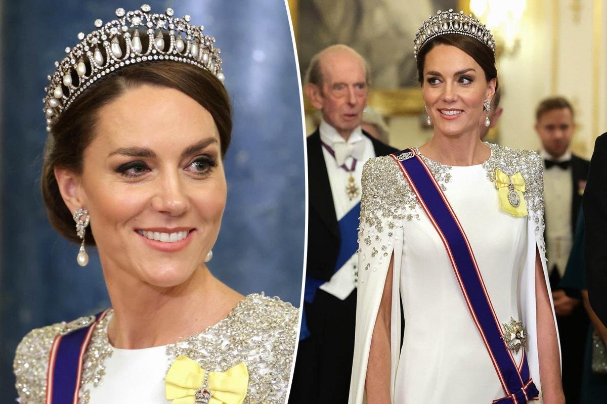 Księżna Walii wybrała tiara Lover’s Knot na kolację z prezydentem Republiki Południowej Afryki, pierwszą w swoim nowym tytule królewskim. Wybrała ją również na przyjęcie dla korpusu dyplomatycznego w grudniu 2023 r. oraz sześć miesięcy wcześniej na ślub księcia Husajna i Rajwy z Jordanii. Ponieważ nie brała udziału w tego typu wydarzeniach w 2024 r., postanowiła wybrać ją również na dwa uroczyste spotkania w 2025 r., najpierw z Macronami, a w tym tygodniu z Trumpami.