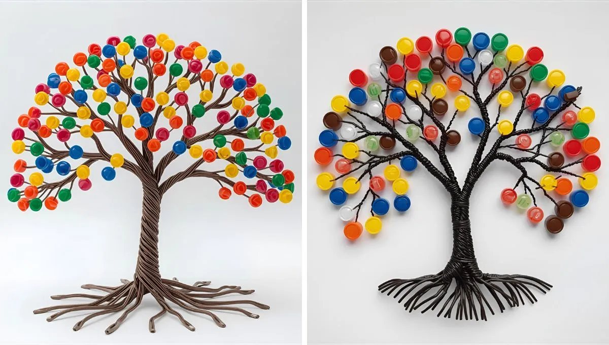 Naucz się tworzyć drzewo życia z materiałów pochodzących z recyklingu, które z pewnością masz w domu: niewielkiej ilości drutu i kilku plastikowych nakrętek